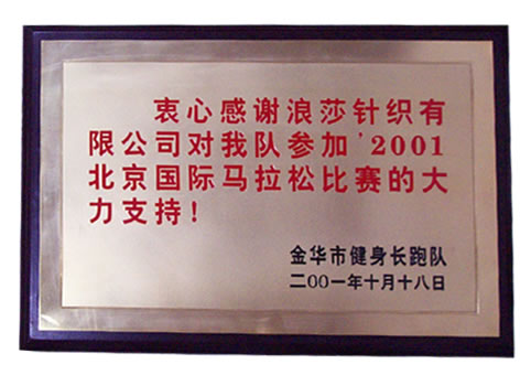 對2001年北京國際馬拉松比賽的支持