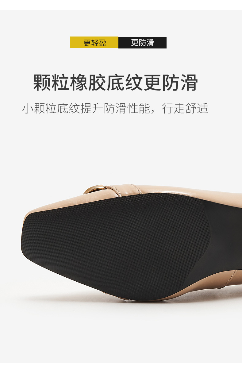 淺口高跟鞋女春夏鞋子2021新款英倫小皮鞋一腳蹬方頭真皮粗跟單鞋