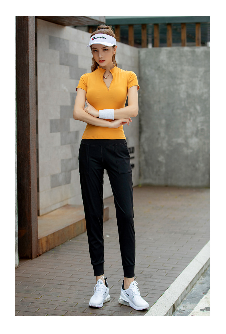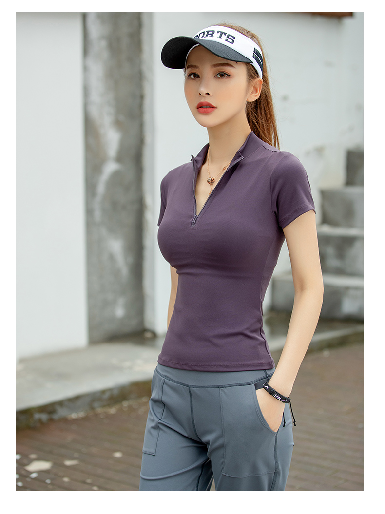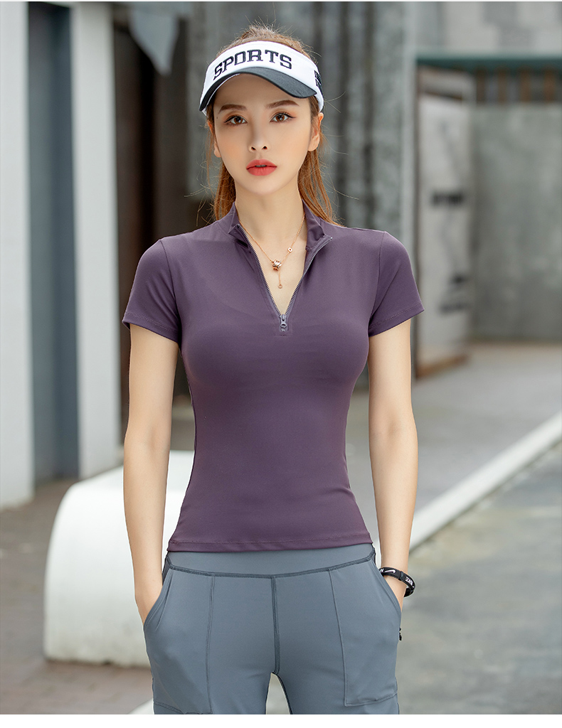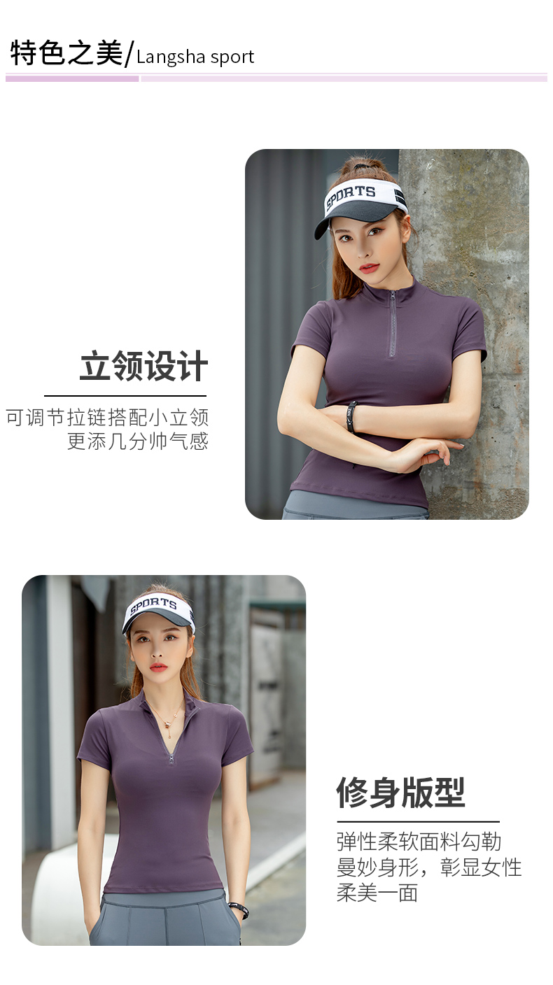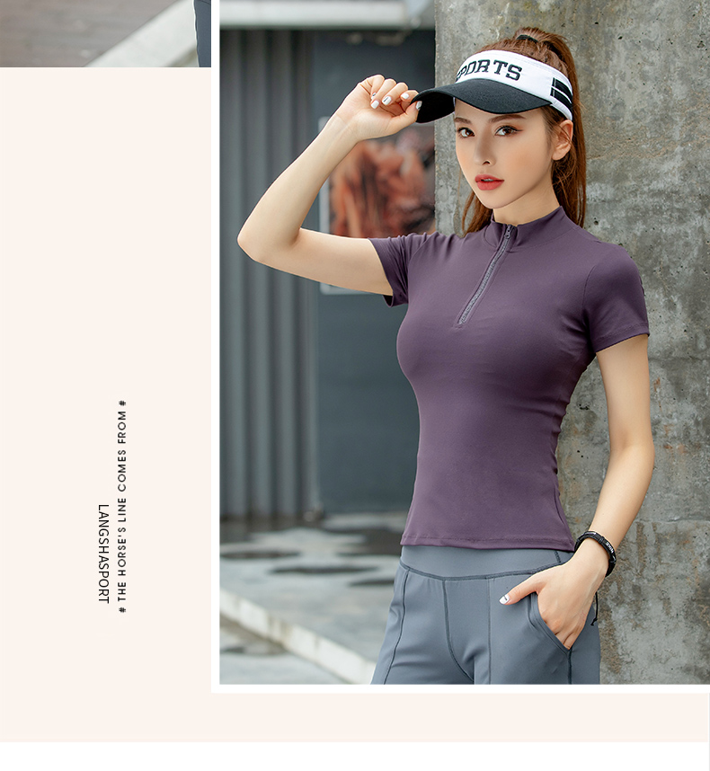 浪莎運動短袖女速干透氣緊身夏季性感V領(lǐng)瑜伽健身服跑步上衣T恤