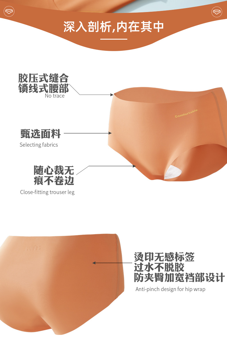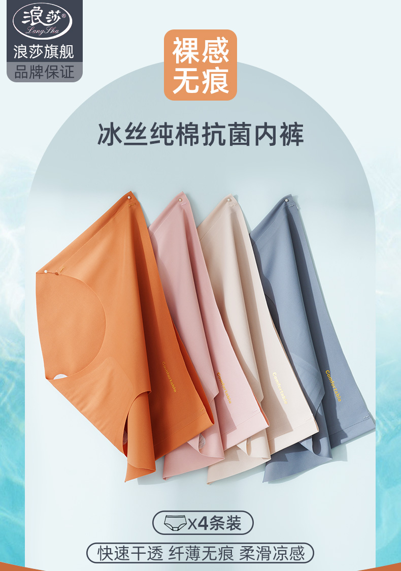 浪莎無(wú)痕內(nèi)褲女士冰絲純棉襠抗菌春夏薄透氣一片式中腰三角短褲ZW